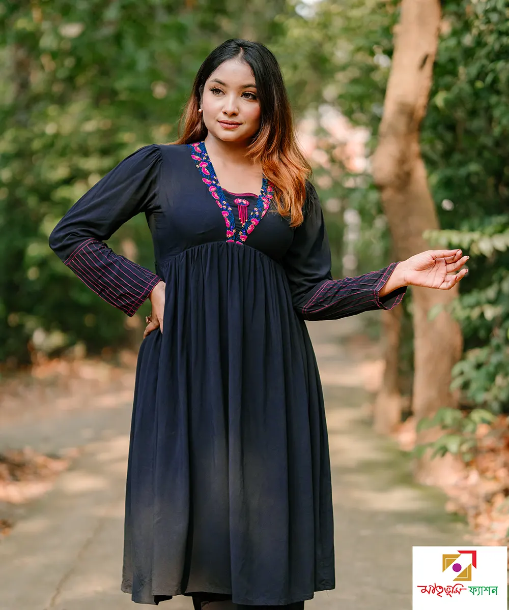 ☛ ভি নেক ডিজাইনের মধ্যে এম্ব্রয়ডারী ও হাতের কাজ করা।