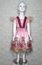 Home Eid Collection Girls Frock-Peach color tissue fabrics