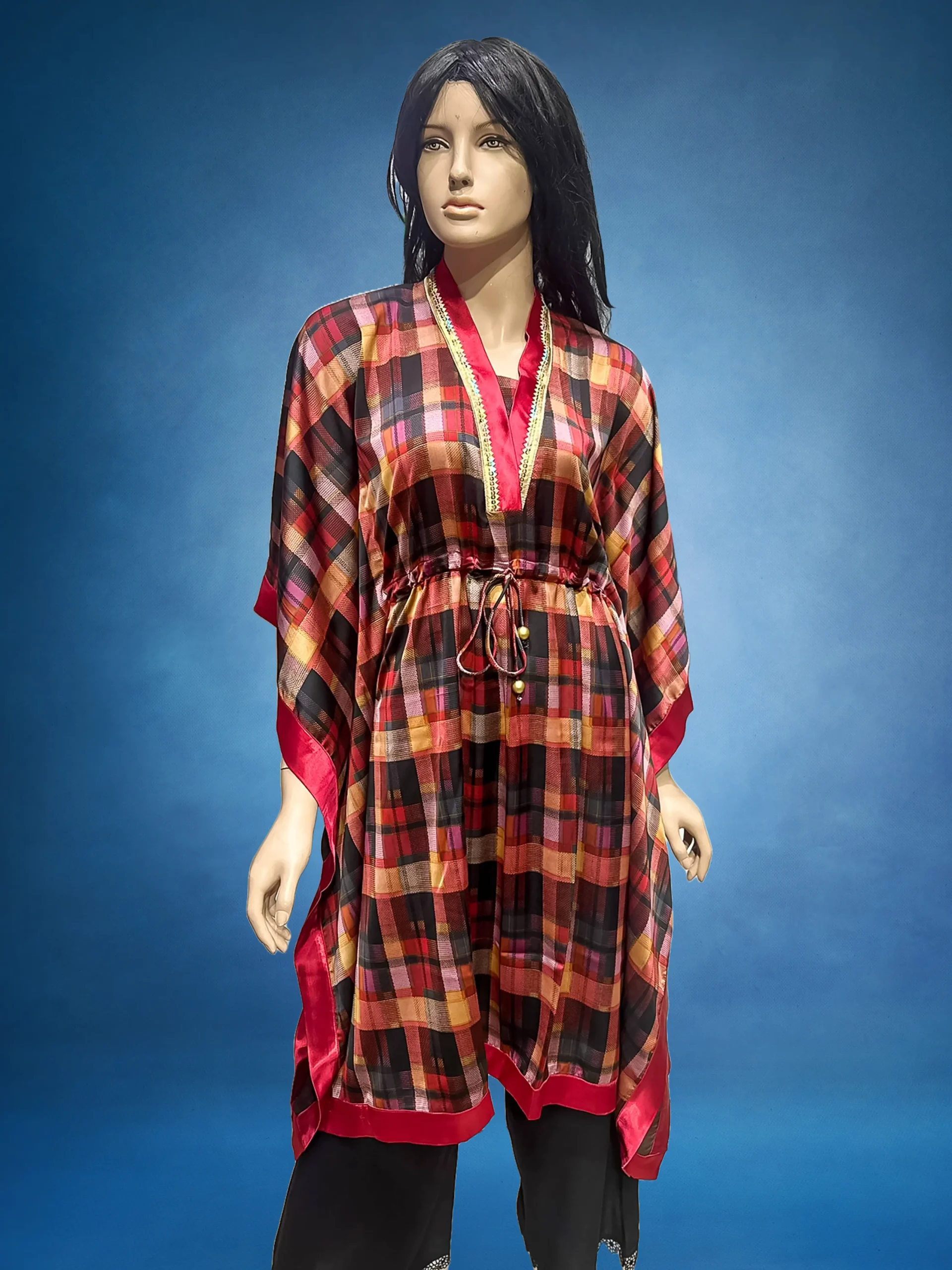 ফেব্রিক্স: লাল কালো চেকের প্রিন্টেড সিল্ক